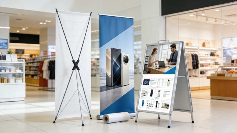专注于展板、X展架、易拉宝等展示器材的定制与制作,适配会议、展会、门店宣传、活动推广等多种场景。产品采用轻便耐用的材质,设计科学、安装简单,无需专业人员协助……